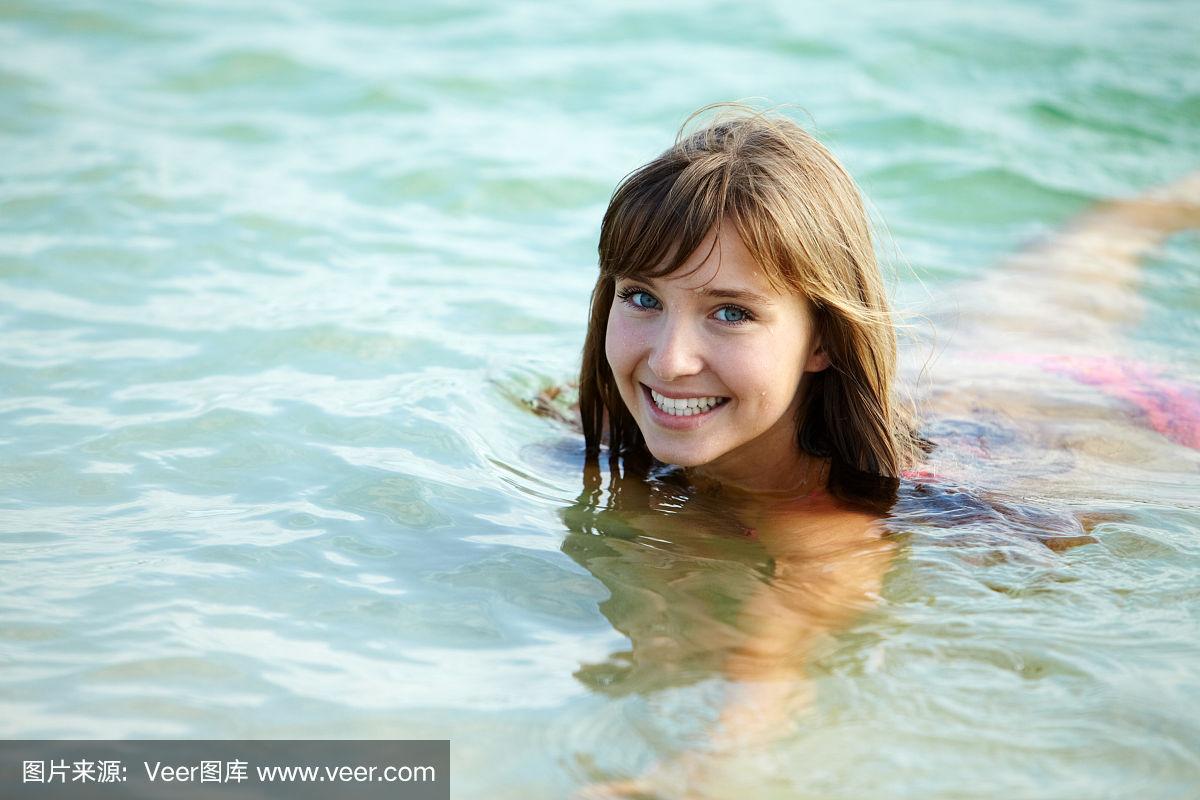 游泳池里的美女