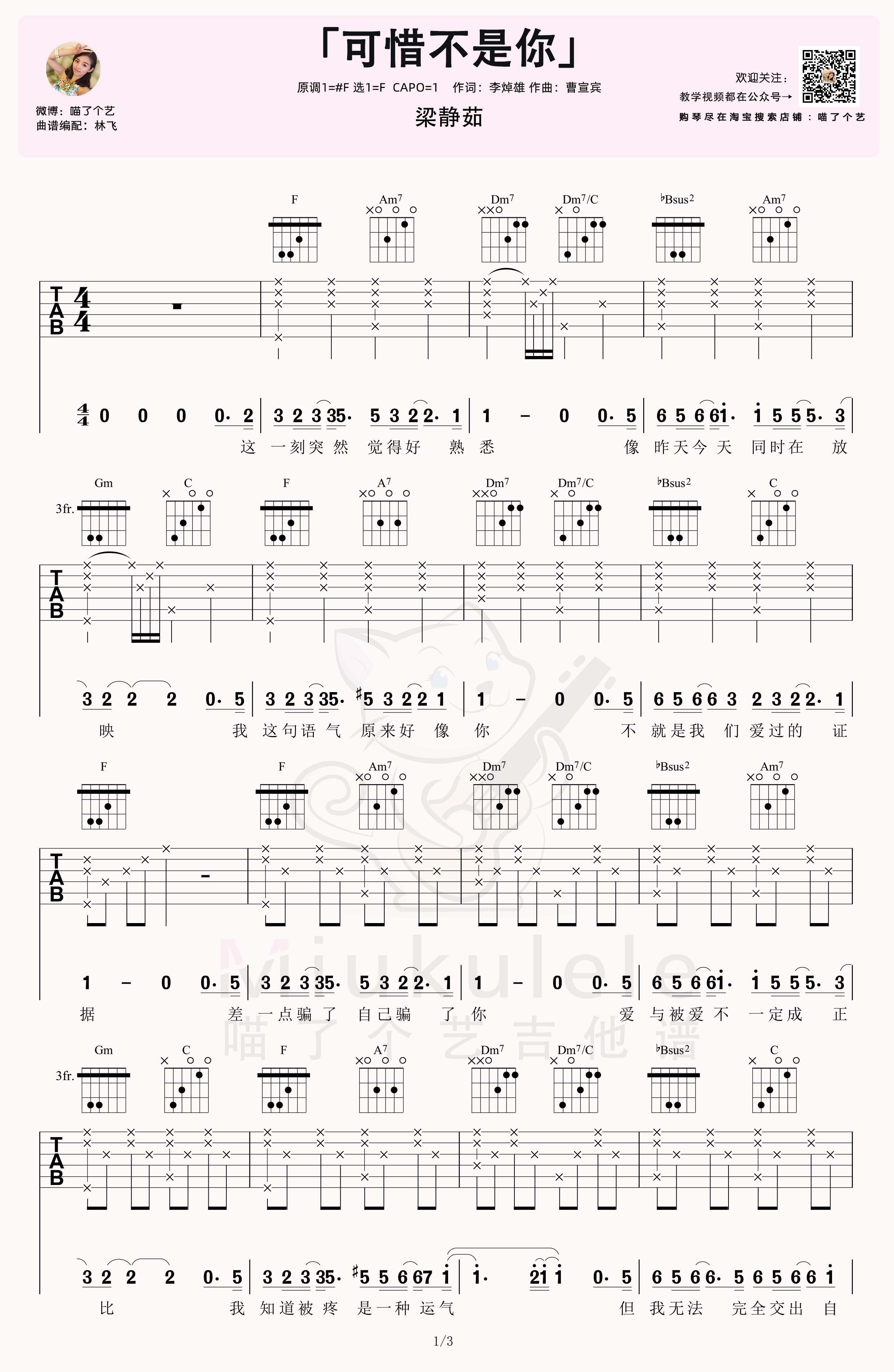 庄心妍《再见只是陌生人》f调吉他高清六线谱f调六线pdf谱吉他谱-虫虫