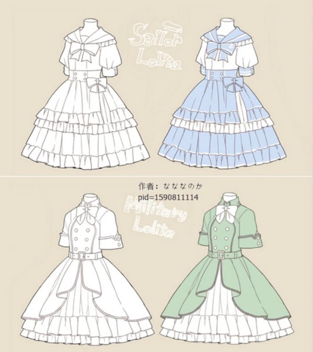 lolita 洛丽塔 裙子 参考 图鉴 教程 画画 绘画 动漫 素材