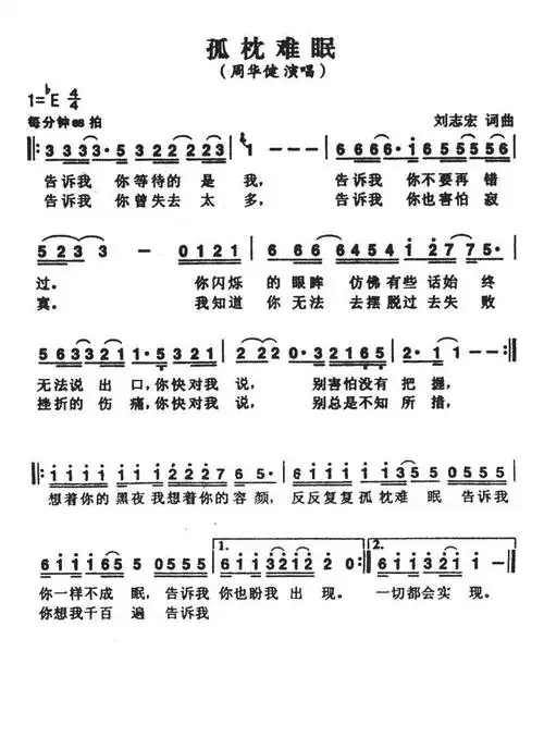 周华健孤枕难眠简谱,周华健孤枕难眠歌谱,周华健孤枕难眠歌词,曲谱