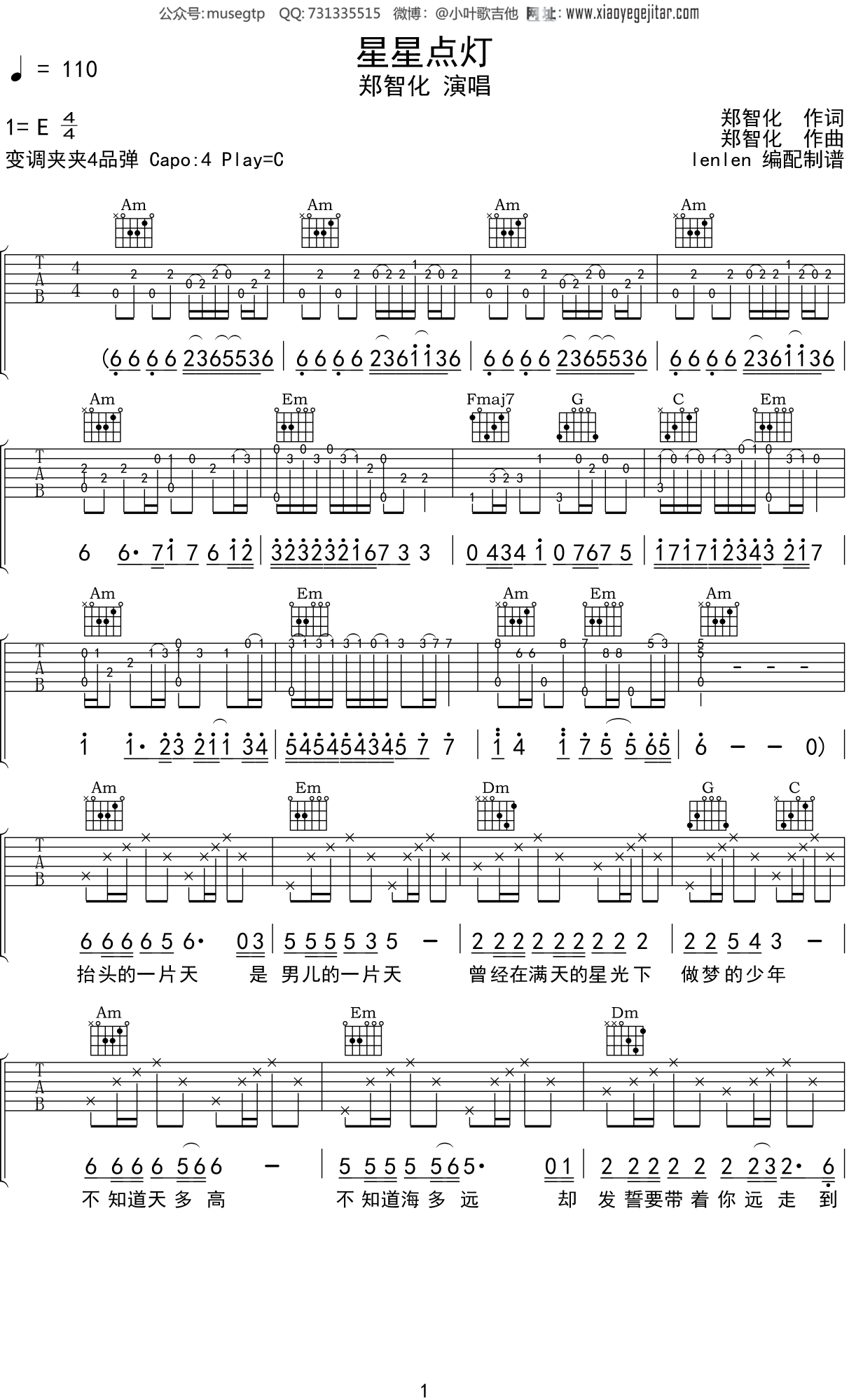 星星点灯吉他谱_郑智化_前奏间奏双吉他_c调弹唱谱