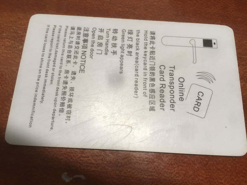 早上洗漱完毕,在退房之前,拍张房卡照片.