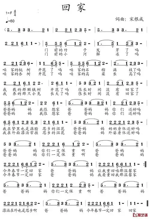 回家 歌谱简谱网