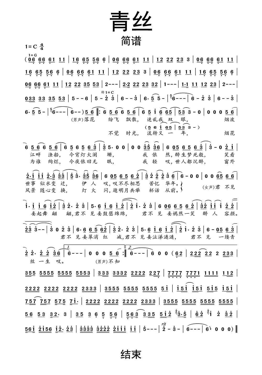 青丝歌曲歌词简谱