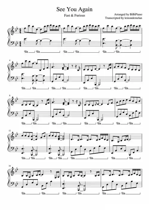 see you again-速度与激情7主题曲五线谱预览1-钢琴谱档(五线谱,双手