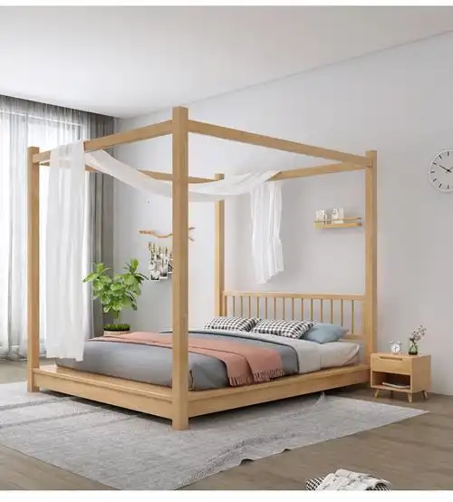 雄卓拔步床新中式禅意现代架子床实木双人床简约四柱床民宿原木色可免