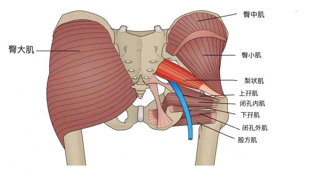 由此看来,上面有臀中肌,臀小肌,下面有上孖肌,下孖肌,闭孔内肌,股方肌