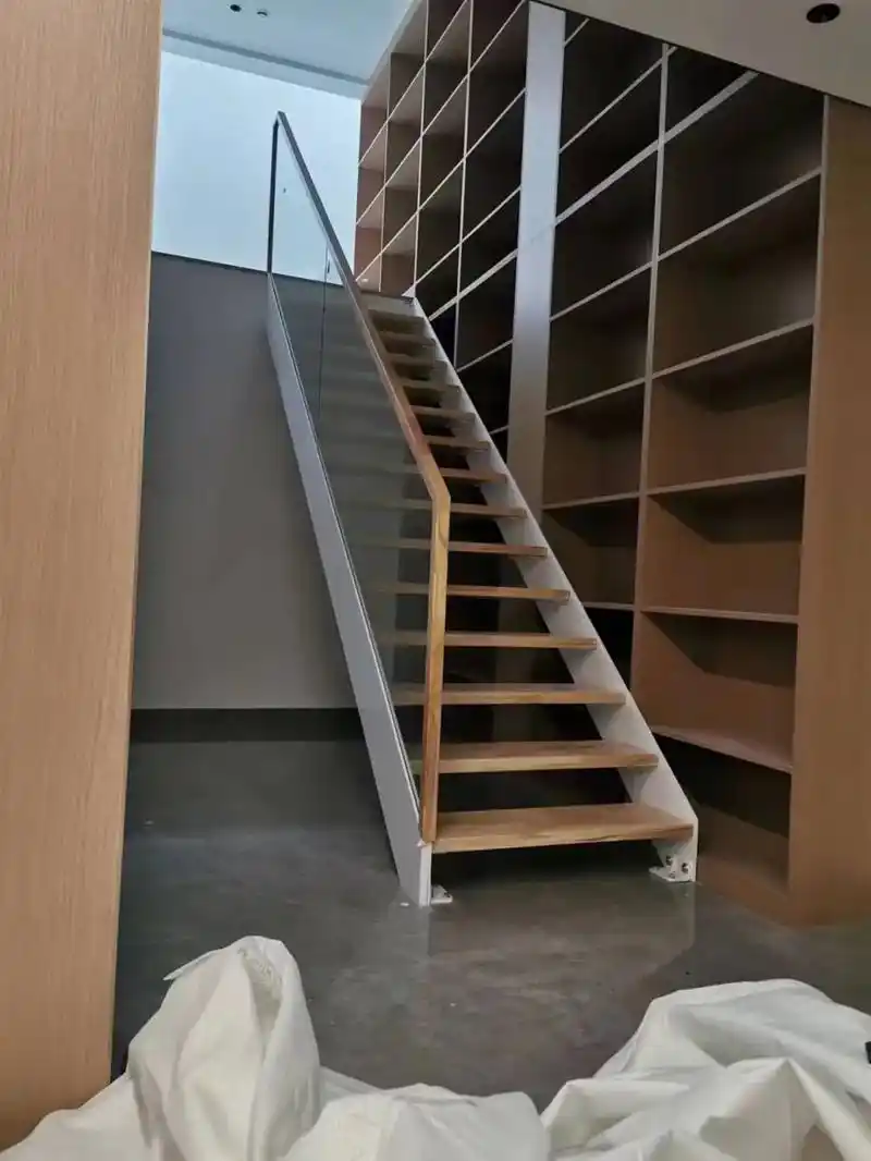 玻璃护栏直梁斜梁室内整体钢木复式阁楼跃层现代简约家用楼梯定制