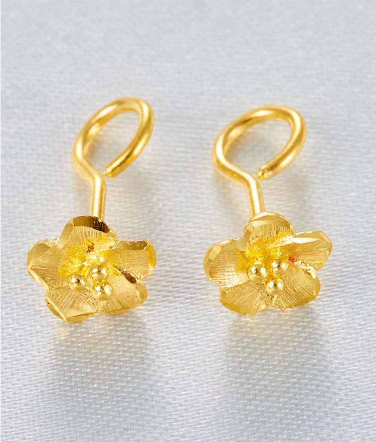 老庙足金黄金繁花耳针耳饰简约时尚黄金星星樱花耳钉女一对
