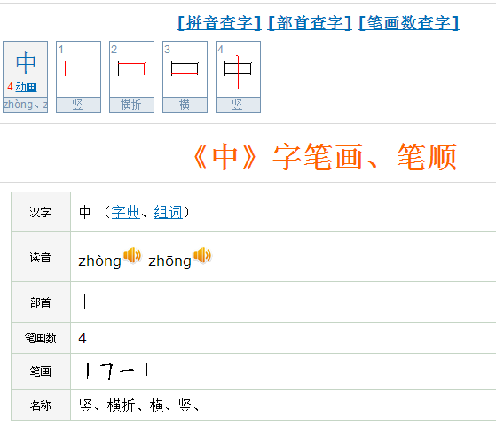 中的笔顺拼音及解释