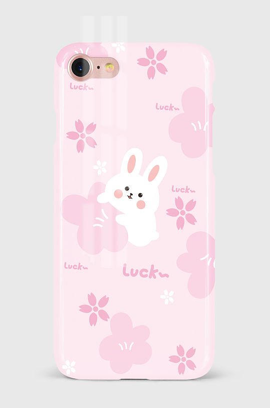 原创手绘卡通兔子可爱创意粉色手机壳