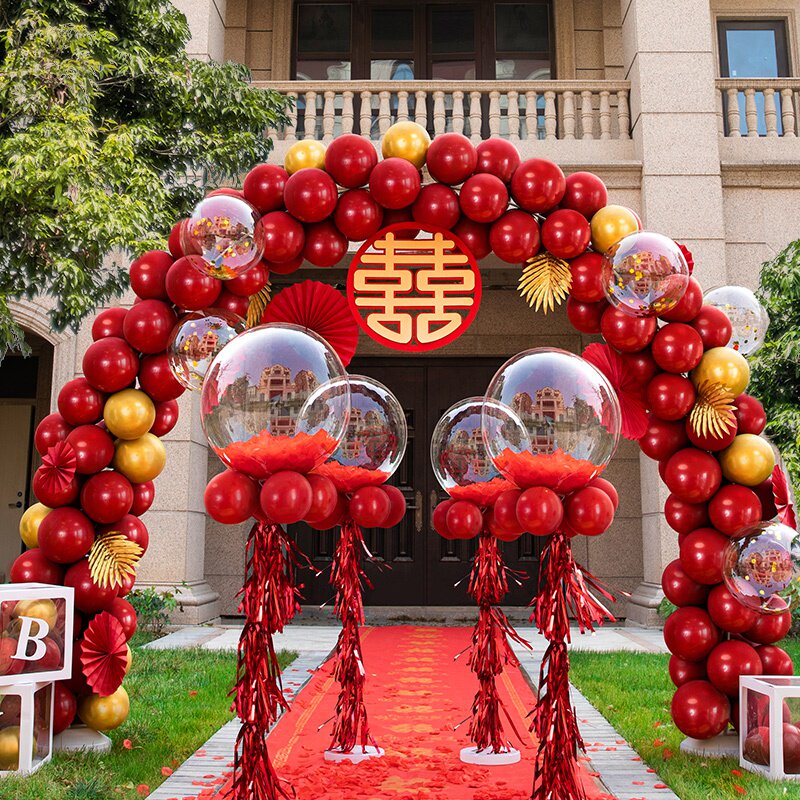 气球拱门室外农村婚礼现场布置结婚酒店场地装饰路边开业婚庆用品