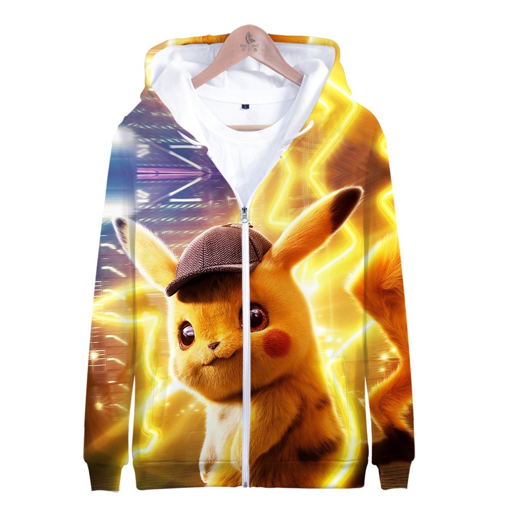 成人童装跨境精灵宝可梦:大侦探皮卡丘数码印花3d带帽卫衣