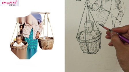 素描挑着担子的人