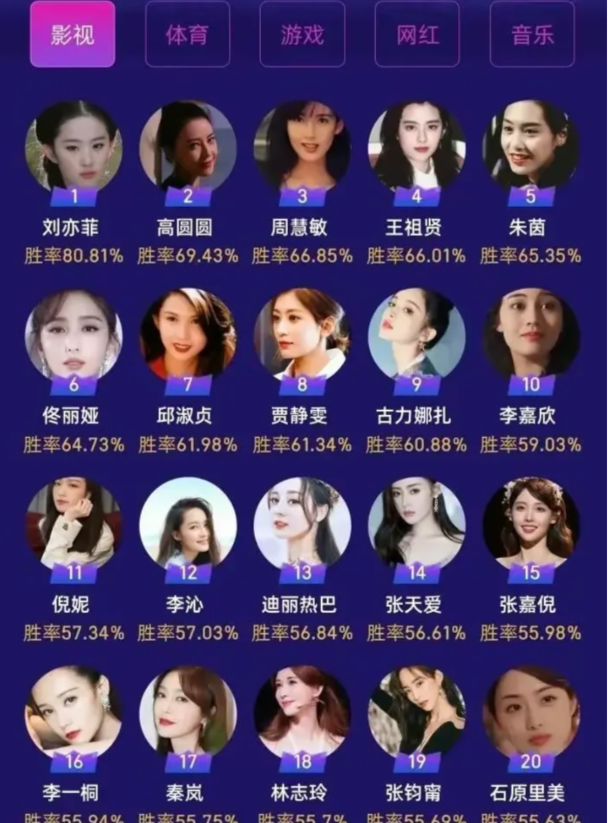 网友评选的女星排行榜 看看你的爱豆在哪 上榜的女神名单,跟往年比