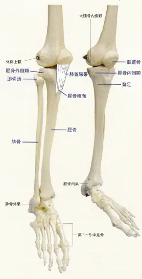 胫骨是连接股骨下方的支承体重的主要骨骼,腓骨是附连小腿肌肉的重要