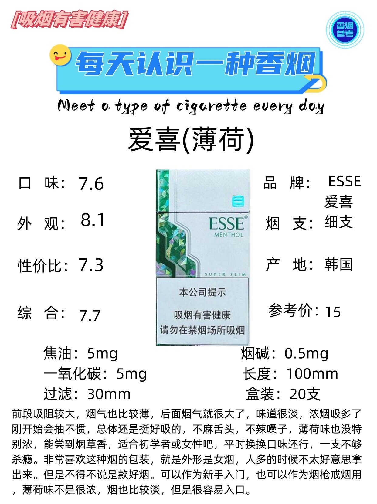 95爱喜(esse),这个来自韩国的香烟品牌,以其独特的薄荷口味赢得了