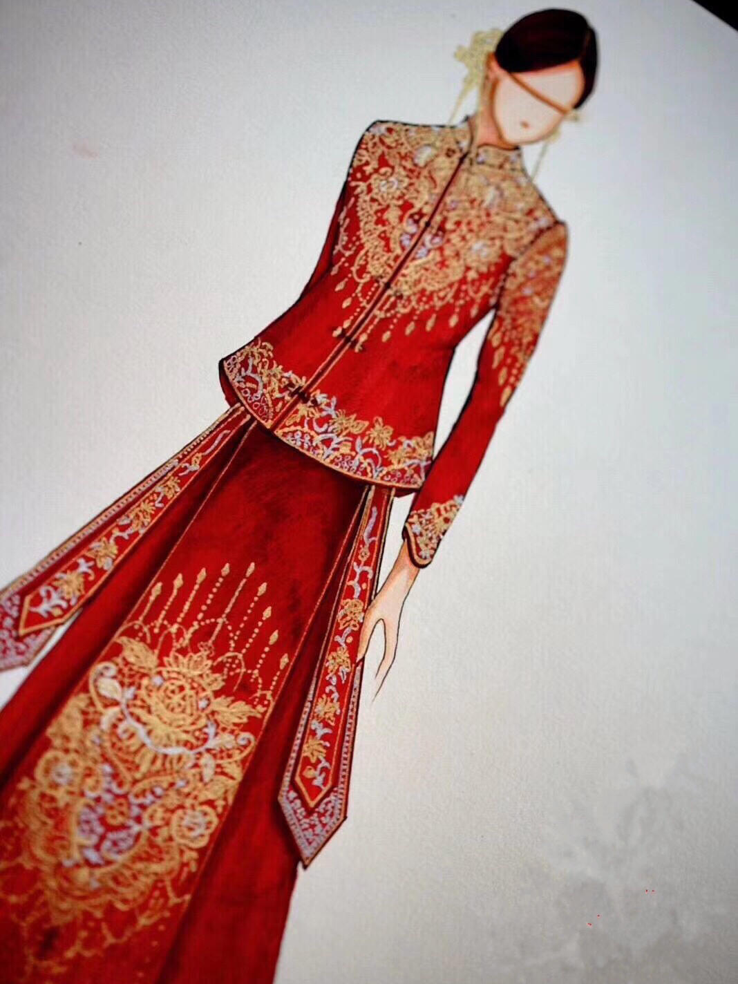 中式婚礼礼服(设计|手绘效果图)又想骗我结婚!