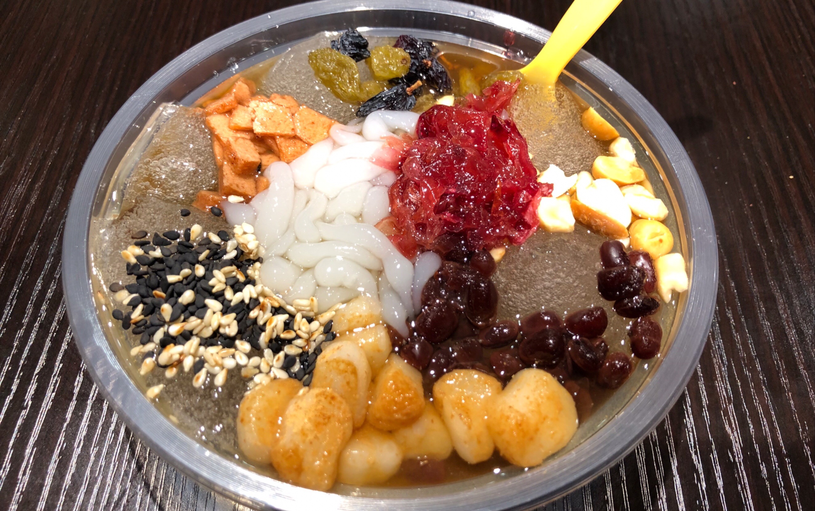 吃法很简单,冰粉 各种配料.配料越多,价格越贵.