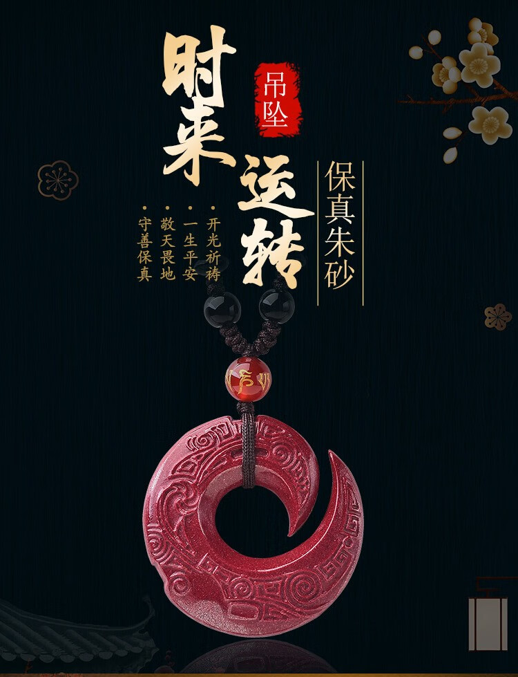 高含量朱砂时来运转吊坠本命年平安扣男女款项链挂件棕色绳款