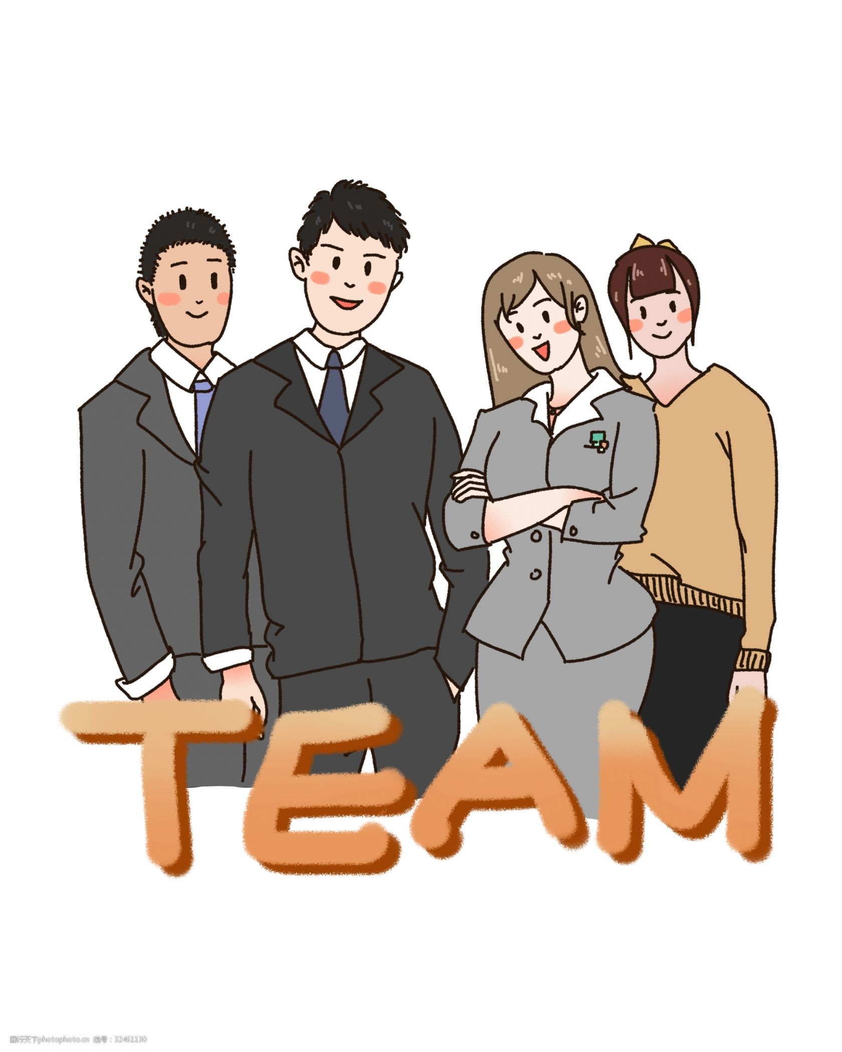 手绘卡通人物企业团队合作在一起插图海报ai矢量设计素材i2321702