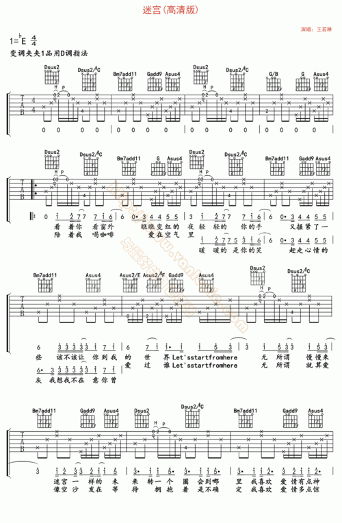 迷宫吉他谱王若琳图片谱标准版