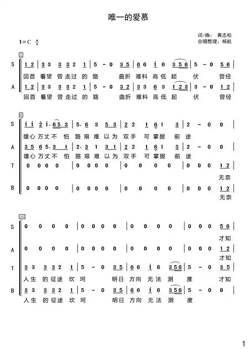 唯一的爱慕(女高/女中/男高/男低)合唱谱,作者灵栖清泉,分享平台来自