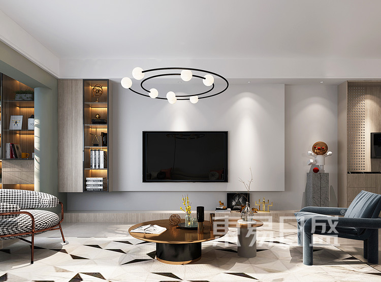 现代简约风格客厅微晶石电视背景墙装修效果图