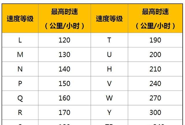 找到自家轮胎所能承受的最高速度轮胎速度级别对照表大家可以根据自家