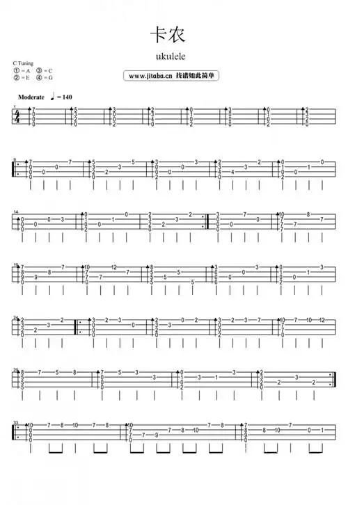 卡农_尤克里里谱_canon1