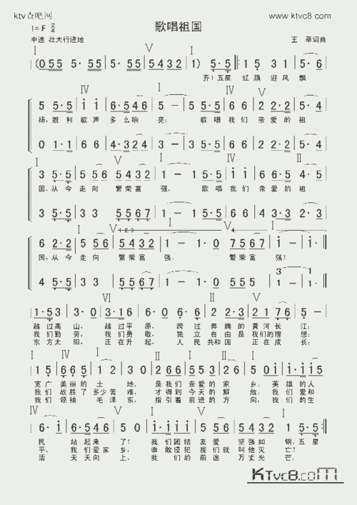 歌唱祖国_歌谱简谱_哆来咪123曲谱网