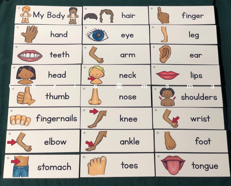 body身体部位英语单词闪卡英文汉字认识卡片宝宝早教启蒙双语教具