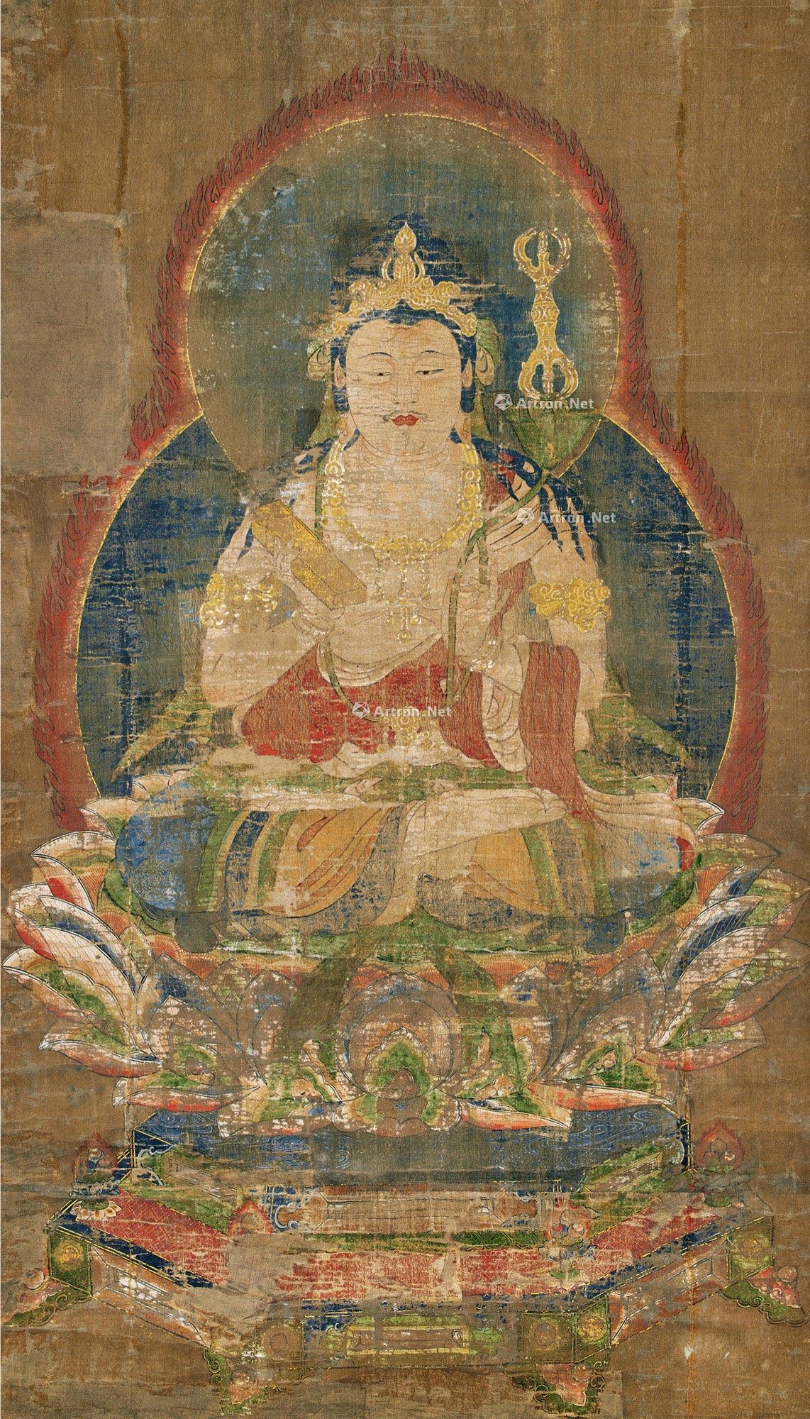 般若佛母身为金黄色为智慧的象征,一面四臂,头载宝冠,以跏趺姿坐于