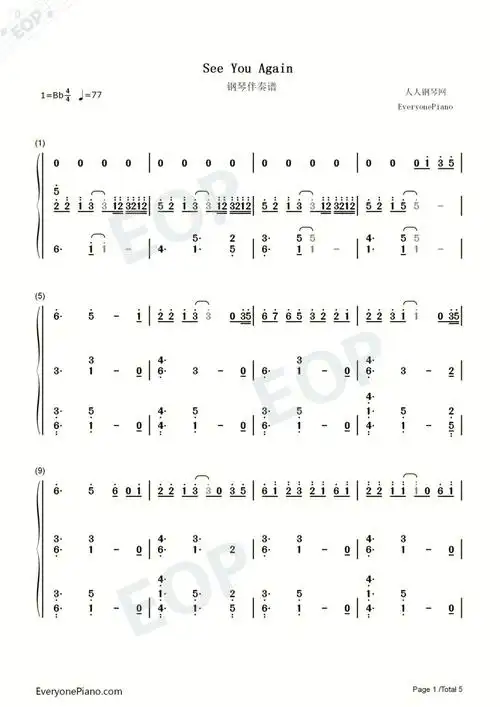 seeyouagain钢琴双手简谱
