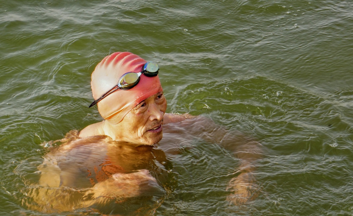 坚持游泳的古稀老人.