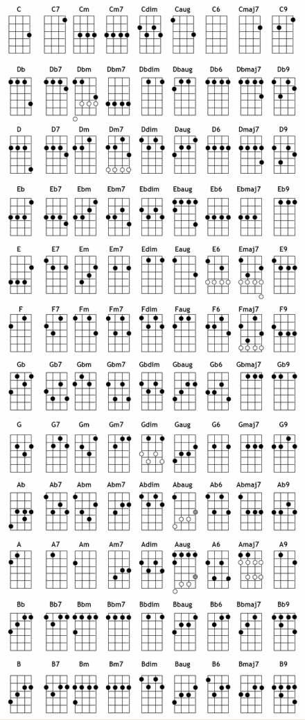最全的尤克里里和弦图与指法(含示范)