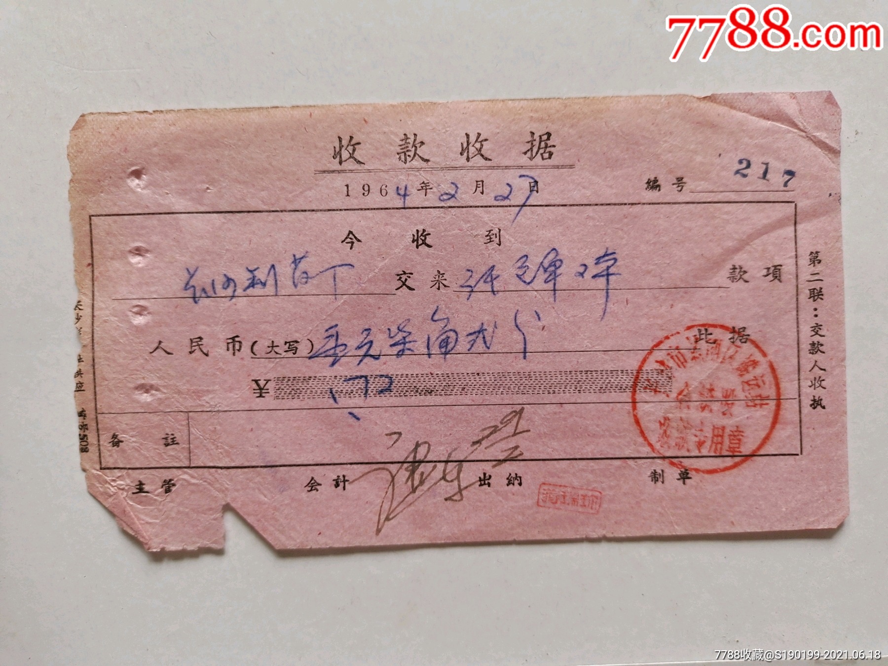 文革时期手写收据单,单张价格,拍一发一