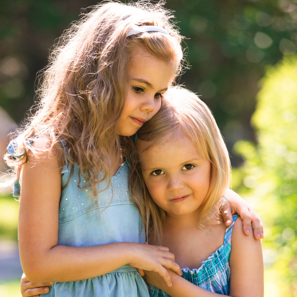 小女孩姐妹拥抱照片