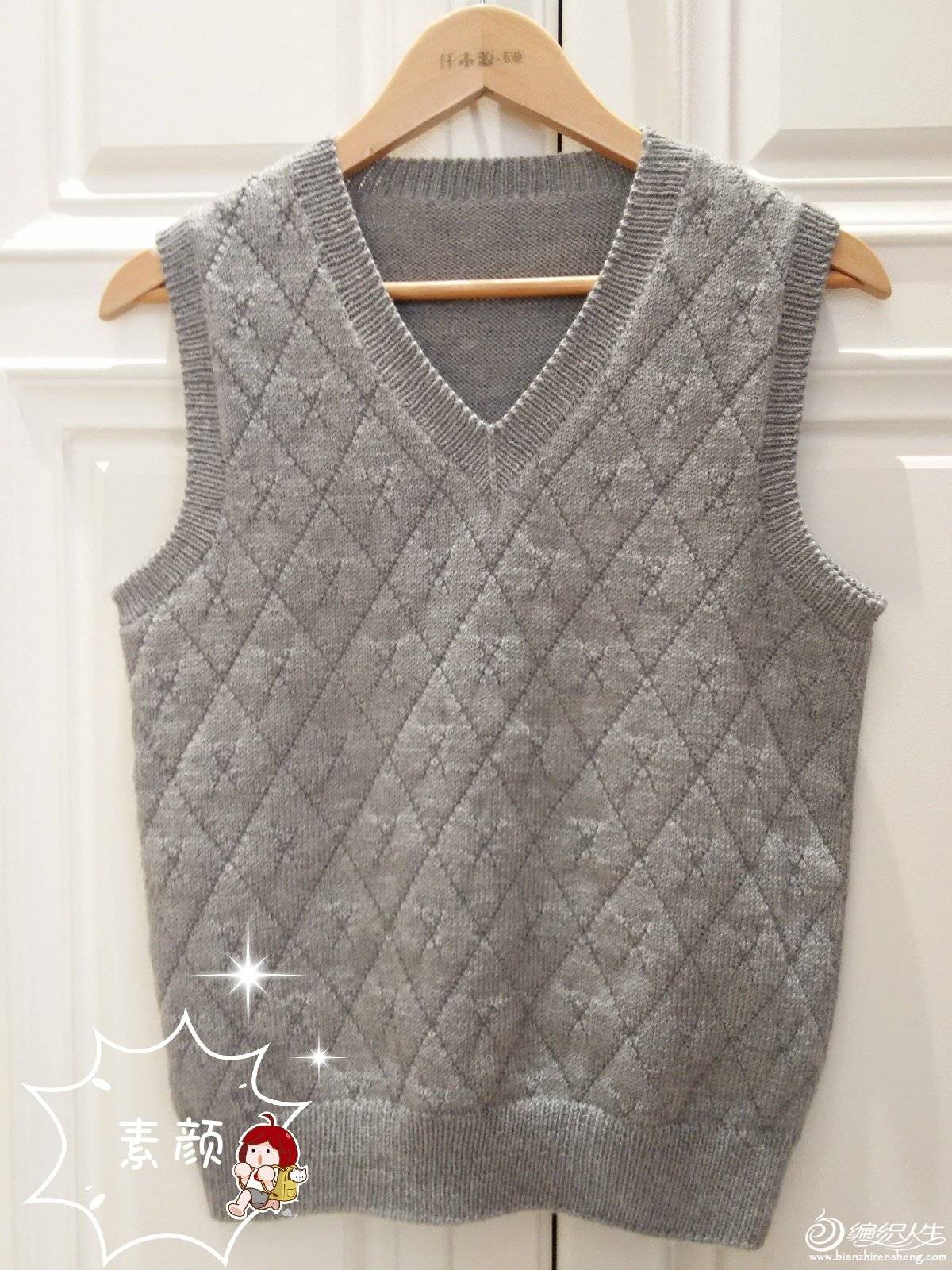 云暖男士棒针扭花菱格背心-编织教程-编织人生