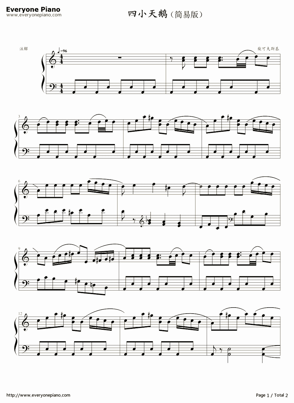 四小天鹅舞曲-四小天鹅-简单版-eop魔鬼训练营练习曲五线谱预览1-钢琴
