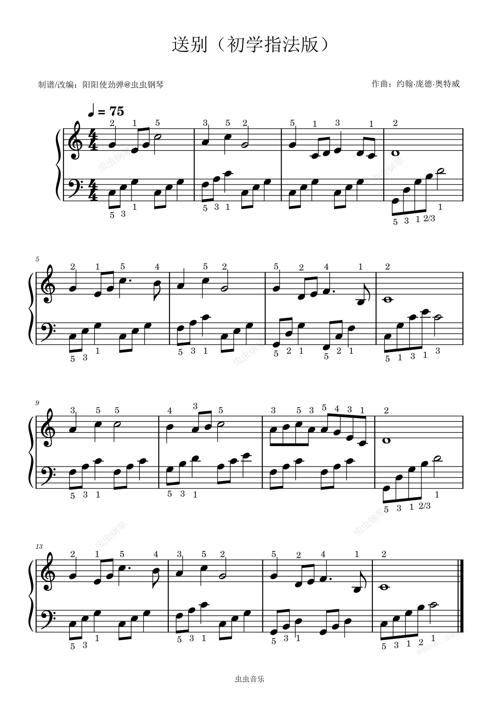 虫儿飞重制版指法标注音符初学者易上手钢琴谱