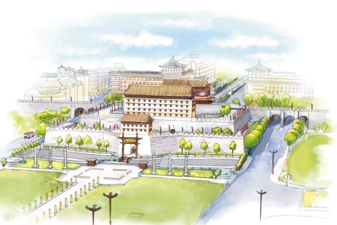 长安百景 #长安 #百景 #永宁门 #城墙 #西安 #插画 #漫画