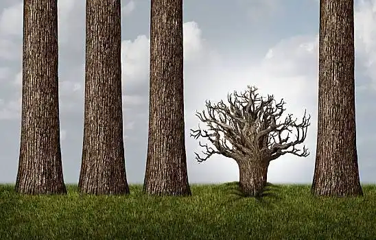 相对,思考,概念,多,大树,一株,树干,倒立,展示,根部,商务,插画