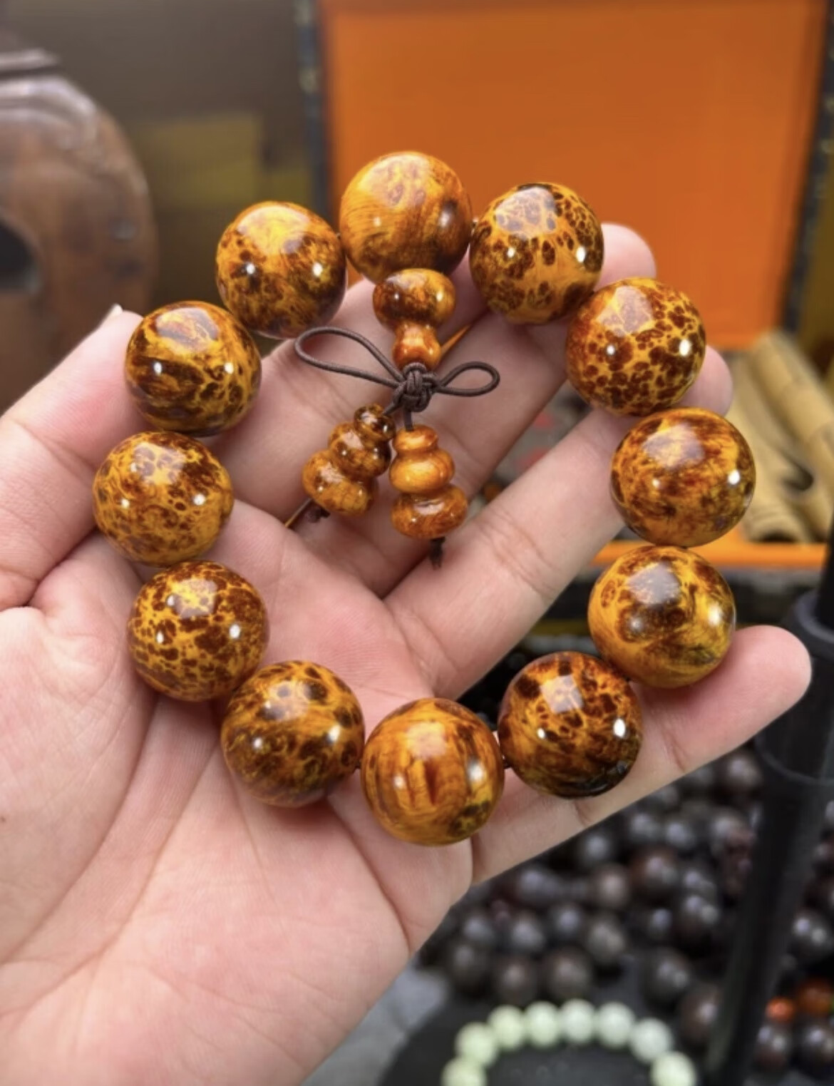 あ溯悠$琥珀木手串北沉香琥珀木男女手串珠串东北红松明子原料高油全