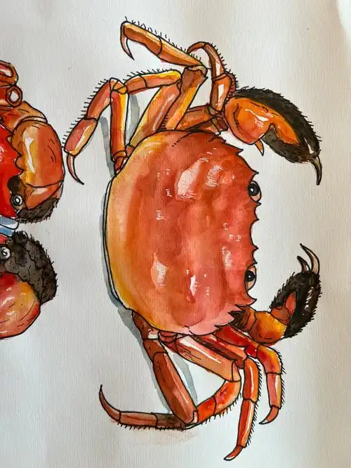 大闸蟹水彩画