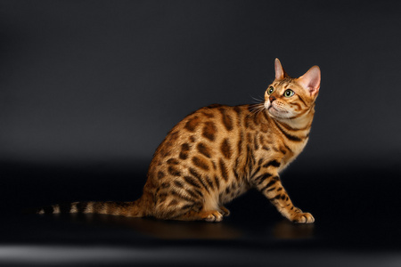 纯种孟加拉猫,纯种的孟加拉猫.黑色背景上孤立