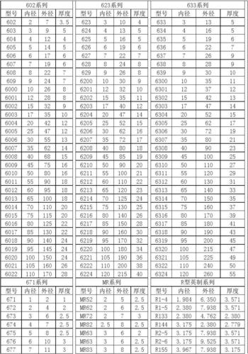 轴承内外径对照表