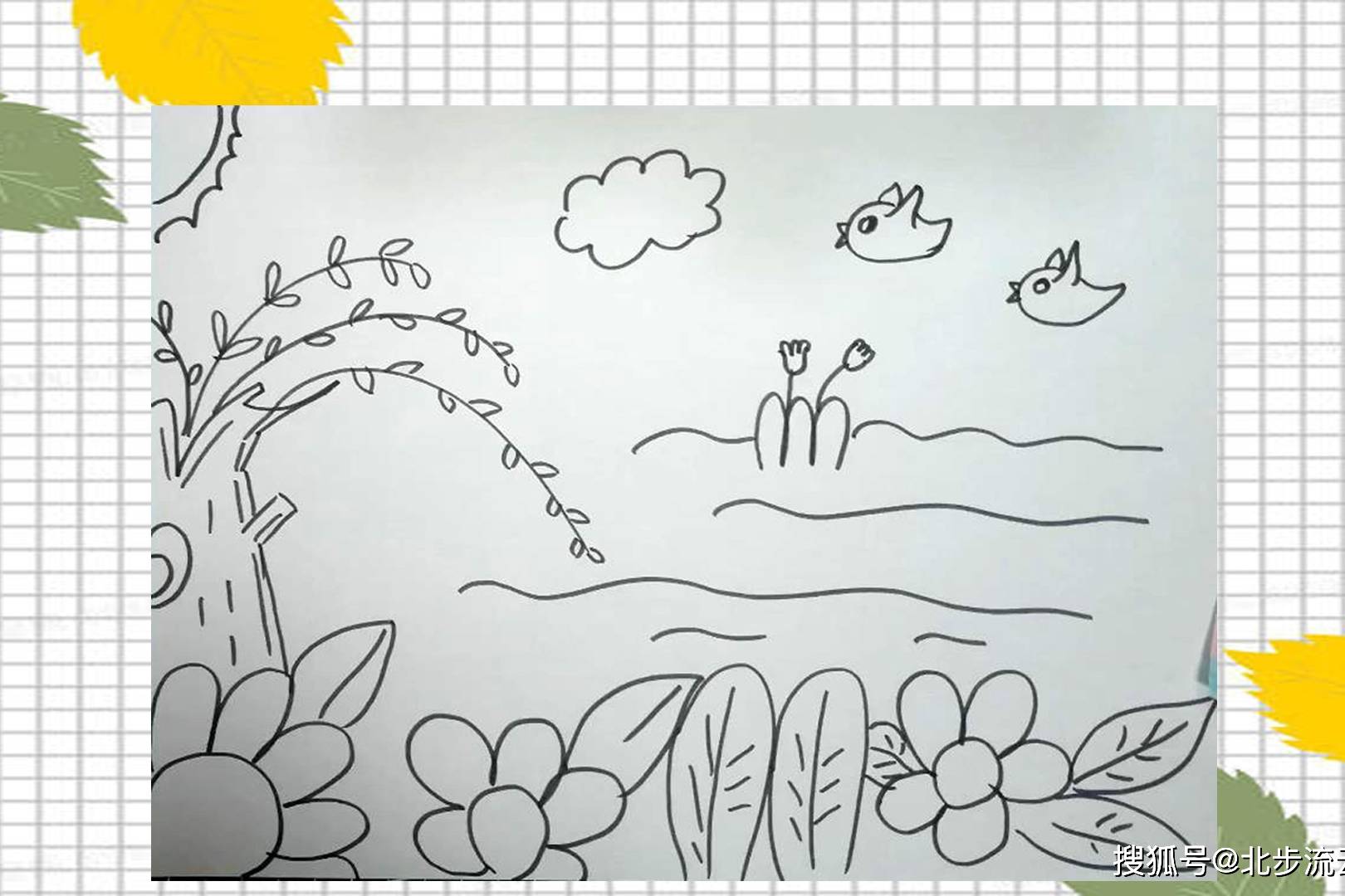 春天风景简笔画来啦!创意绘画,春天的景色,春天来了,一起画春 - 抖音