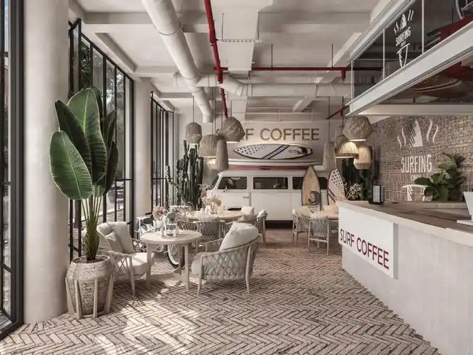 奶油风装修咖啡店效果图简约ins风