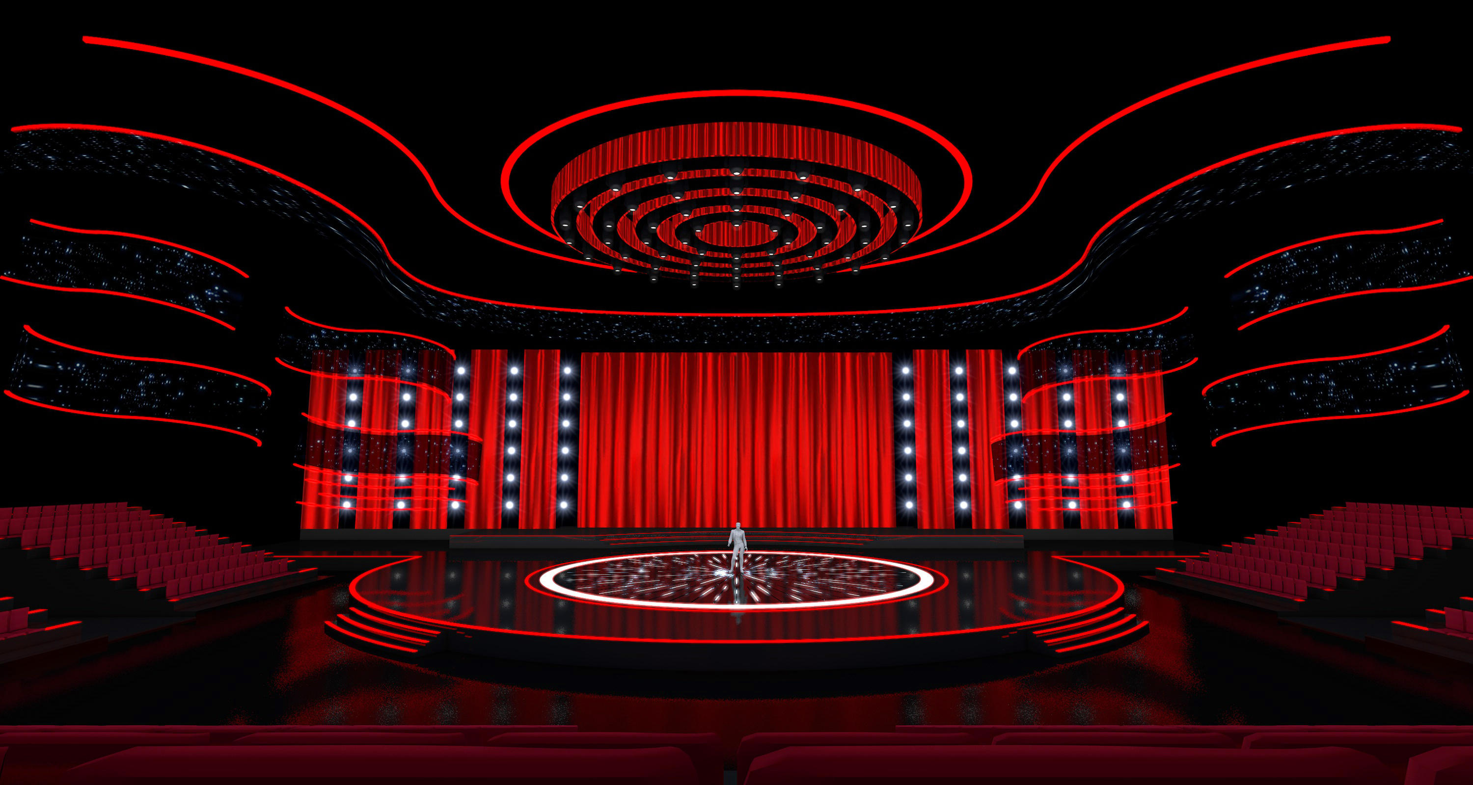 室内大厅舞台背景墙灯光设计图_装信通网效果图